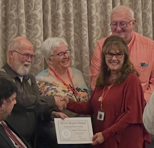 The meeting includes the installation of the 2023-24 officers, the President’s and Treasurer’s Annual Reports and the awarding of the RIRS Bronze Honor Medal. Information about the Rose Show will be shared and there are still a few classes available to sponsor.